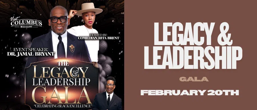 Join us for The Legacy & Leadership Gala: Celebrating Black Excellence on Friday, February 20, 2026, at the Trotter Convention Center in Columbus, Mississippi—an elegant black‑tie evening honoring the trailblazers and leaders who have shaped our community. Featuring nationally recognized leader Dr. Jamal Bryant, hosted by comedian Rita Brent, with Rick “Don’t Go” Mason as Red Carpet MC, this night promises inspiration, celebration, and excellence. Doors open at 6:00 PM, program begins at 7:00 PM—for tickets and information call 662‑400‑0873.
